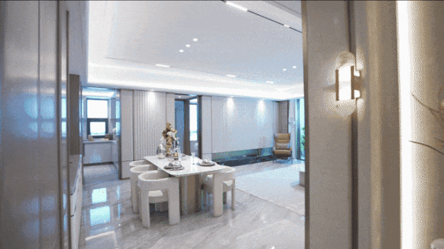 约4.75米层高、约32㎡的精装大堂,配置雪山银狐背景墙,踏入大门就能感受到满满的尊崇感。