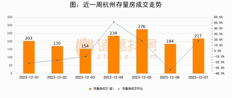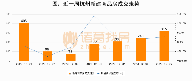 【杭州成交日报】12月07日新房成交315套、二手房217套;涨价房源78套