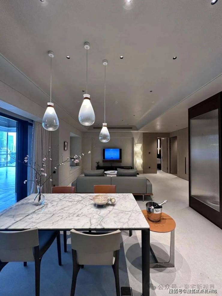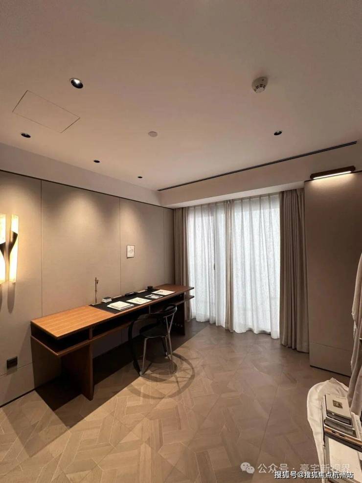 装修标准高:全屋3.3米层高,外立面是玻璃幕墙+橙色铝板,辨识度高。室内精装标准不低,用材讲究,比如大堂用了亚马逊绿奢石,细节感拉满。