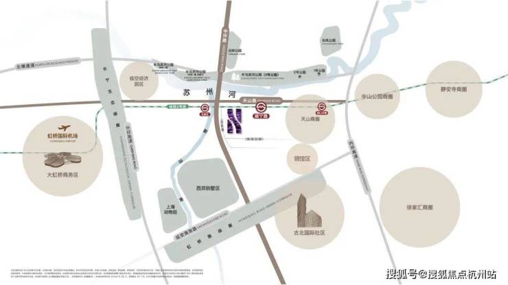 “外事客厅”的独一份定位,离不开长宁独一份的国际交通枢纽优势。作为 全上海仅有与虹桥机场、高铁站“双枢纽”直接接壤的城区,其核心区域通过轨道交通、快速路网构建起 “15分钟国际通勤圈”。