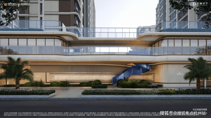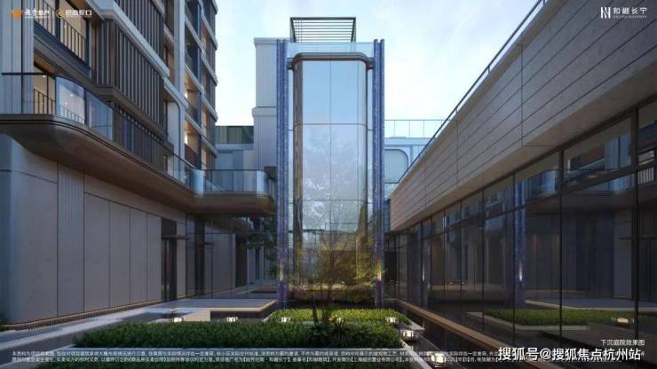 走进社区内部,和樾长宁又引入了 意大利建筑大师卡洛・斯卡帕的设计手法,在四号楼与五号楼之间,一座约60米的东西向景观通廊横贯社区核心,通过 约500㎡屋顶绿化、300㎡下沉庭院与宅间花园构建多维立体景观。