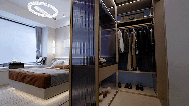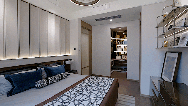 高奢酒店式主卧套房中,预留L型衣帽空间,自由切换时尚秀场。设有独立阔绰卫生间,于宁静之间回到自己的时区。