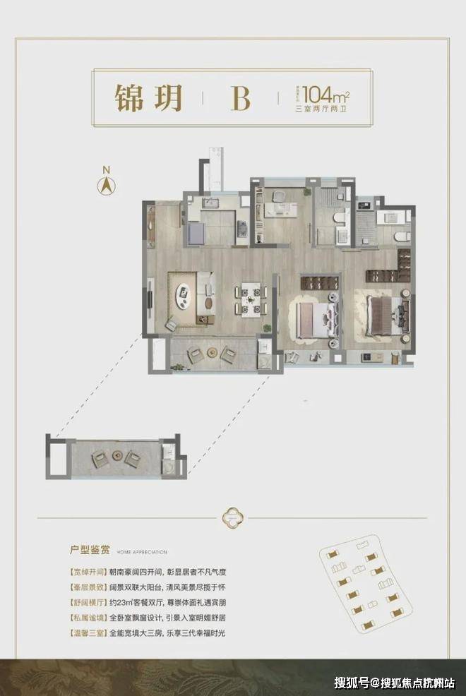 盛青云锦售楼处电话☎400-8778-3344盛青云锦营销中心电话400-8778-3344盛青云锦售楼处位置400-8778-3344在空间尺度的拓展上,【盛青云锦】全面呈现出了越级吊打高面积段传统豪宅的霸气品相。建面约104㎡3房2厅2卫,户型方正,动静分离,创造多元栖居场景,描绘更加开放的生活底色。