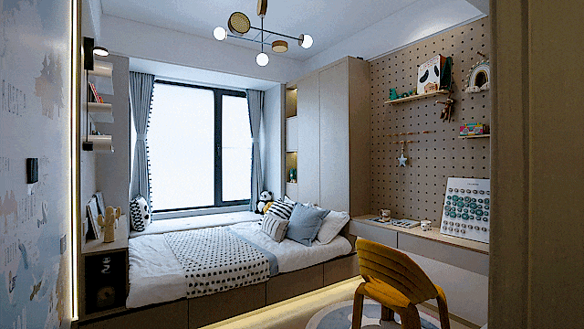 儿童房里,孩子正枕着飘窗外的星光缓缓入眠;老人房里,温柔的月光为晚年的父母照亮书的下一行......多一间灵感之境是你的艺术藏馆、私人健身空间、藏书阁,或是宠物的温馨居室。