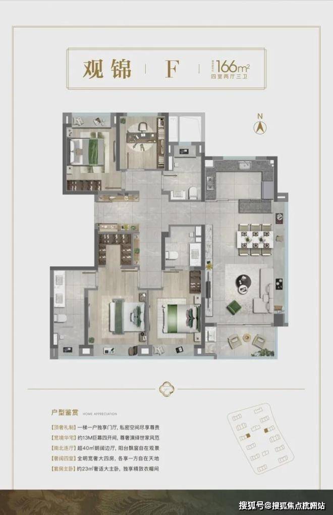 建面约166㎡四房两厅三卫,不断挑战着豪宅市场的上限,一种前卫的生活方式应运而生。一梯一户的居住体验,享独立门厅,自入户而来层层剥离,卸下工作,让疲惫的心得以小憩。