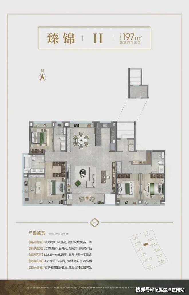 约3.3米层高,约21米奢尺五开间,让人一进门就感受到庞大的生活气场。4+1房布局,演绎高阶生活,在功能方面直接多了一个level。