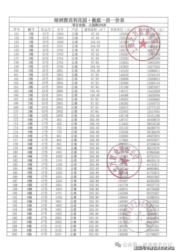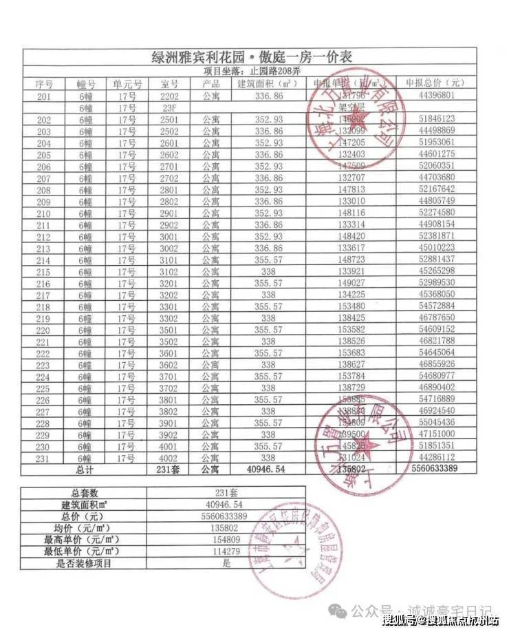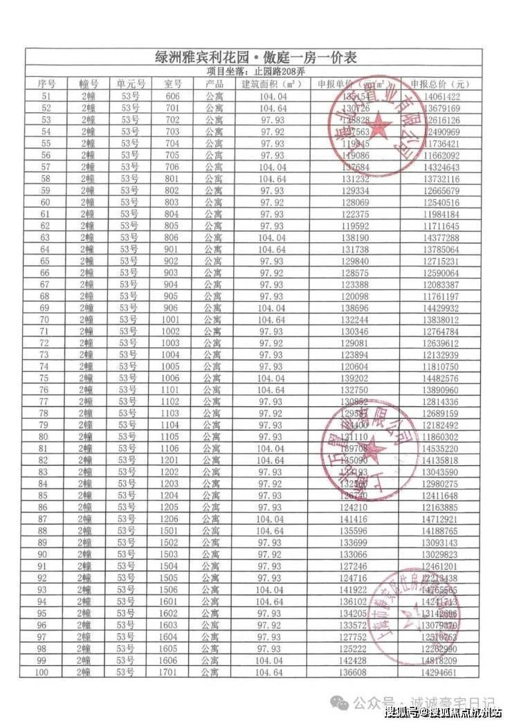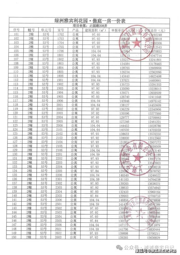 一房一价表发布