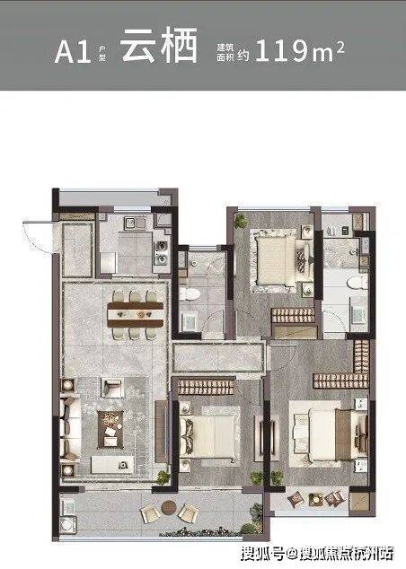 A1: Flat floor 119 ㎡ 3 bedrooms 2 living rooms 2 bathrooms