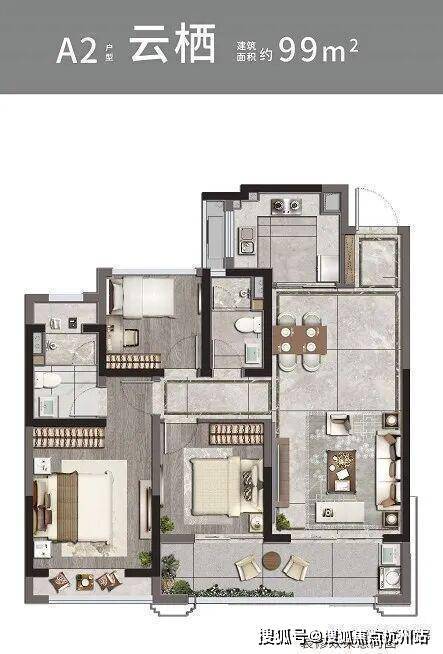 A2: Flat 99 ㎡ 3 bedrooms 2 living rooms 2 bathrooms