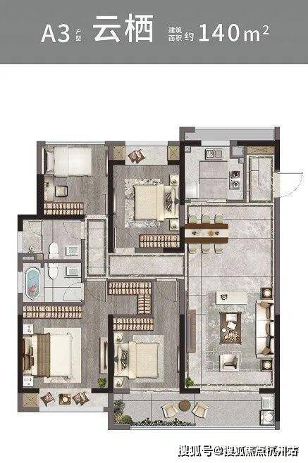 A3: Floor 140 ㎡, 4 bedrooms, 2 living rooms, 2 bathrooms