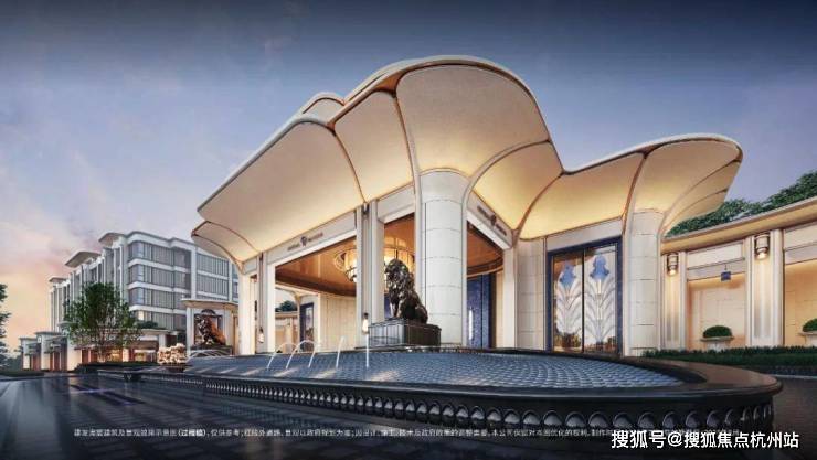 「 玉兰门庭 」摩登飘逸,环抱式落客前场,大师定制 非遗掐丝珐琅门钹,流转温润光华,敬呈归家尊崇礼序,自此启幕生活的华贵序章。