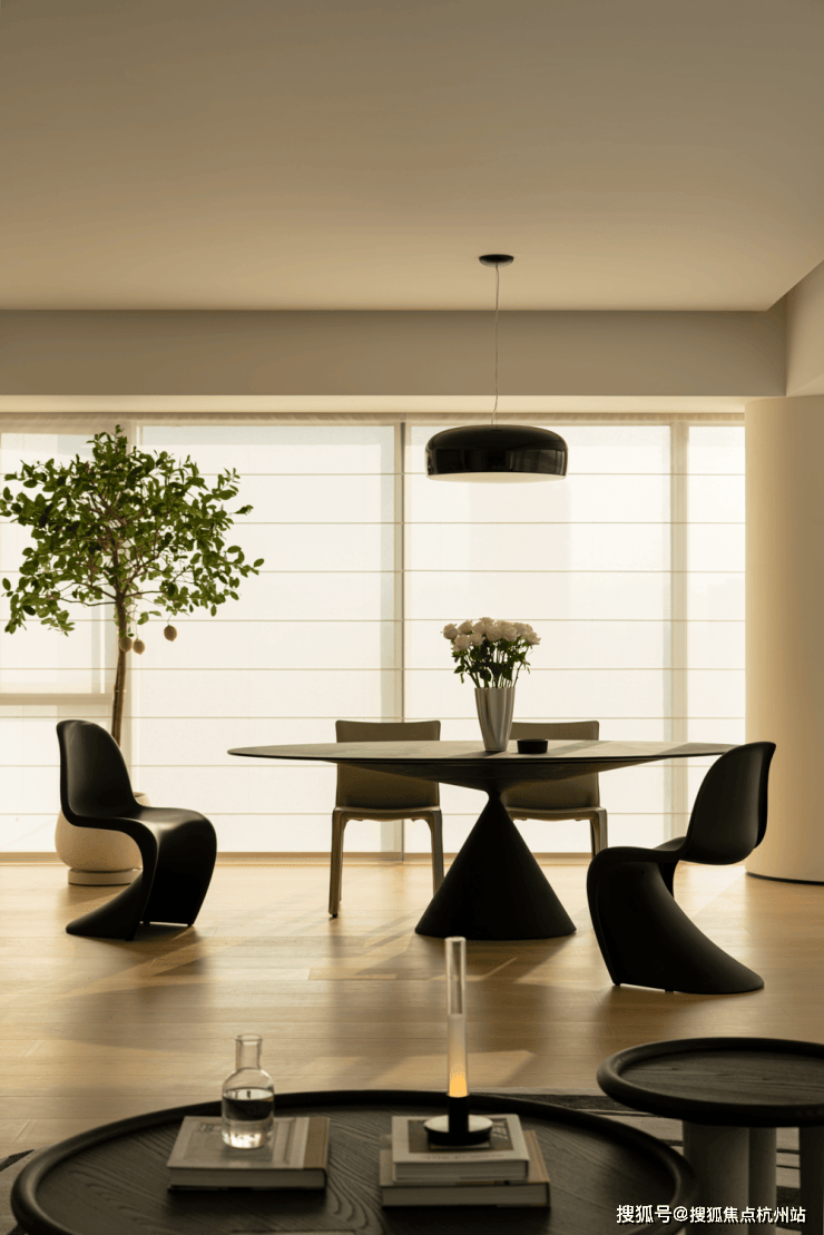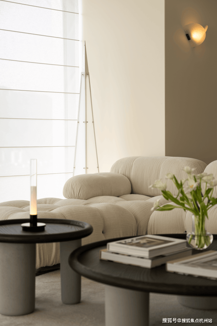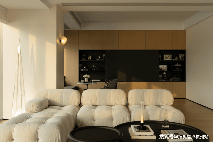 全开放式设计,岛形沙发打破边界,让交流随光影自由发生。午后的光线从侧面洒落,家具被赋予立体的光影层次。