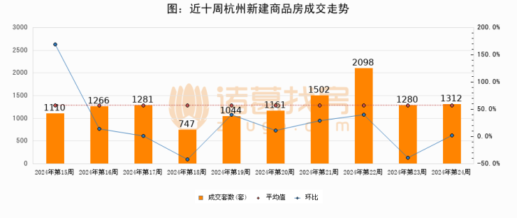 【杭州成交周报】第24周新房成交1312套,二手房1604套,涨价房源673套