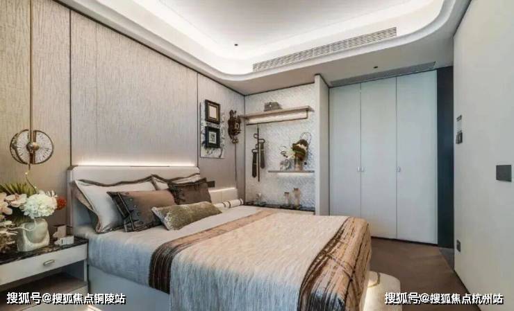 卧室则铺设海派鱼骨拼花地板,借木质肌理的温润与细腻,营造出私密领域的宁静氛围!这种“公区显质感、私域藏温度”的材质分区逻辑,恰是高端住宅设计中至关重要的一笔!
