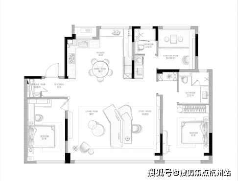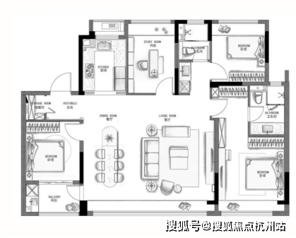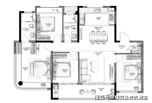 户型采用3+1的百变格局,能灵活匹配从单身、新婚、育儿到三代同住的各个人生阶段。其核心优势在于,在有限面积内实现了功能的最大化。