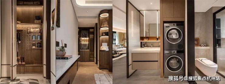 收纳系统是提升生活效率的基础。该户型配置了五大收纳模块,从入户可容纳婴儿车、行李箱的800库玄关,到主卧分层分类的衣柜系统,再到次卫防潮收纳柜和阳台家政柜,基本覆盖了高频生活场景的收纳痛点。