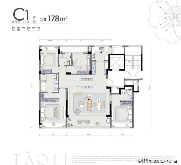 C 户型・178㎡ 四房三厅三卫(楼王主力)