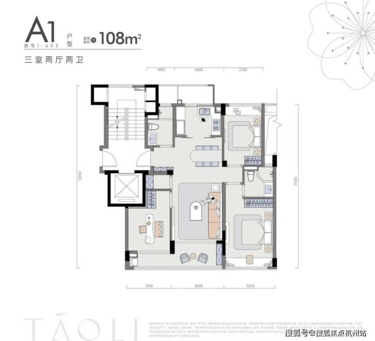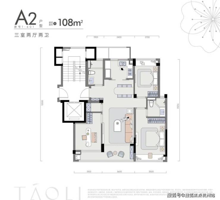 A1 户型・108㎡ 三房两厅两卫