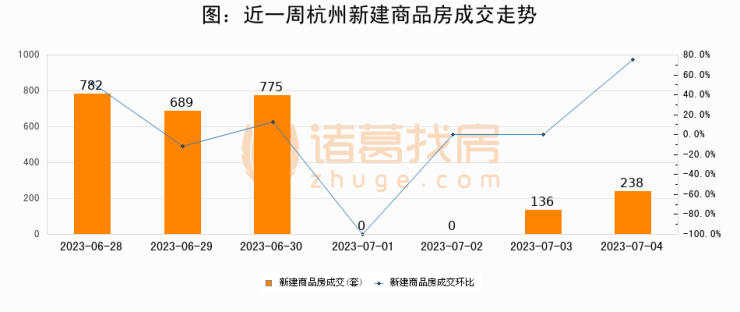 【杭州成交日报】07月04日新房成交238套、二手房151套;涨价房源998套