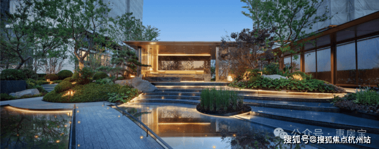 聆星客厅前方种植了松界王者—— 日本黑松,约4000万+的顶豪融创外滩壹号院的社区内,也有一颗同款;