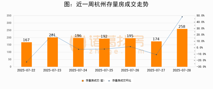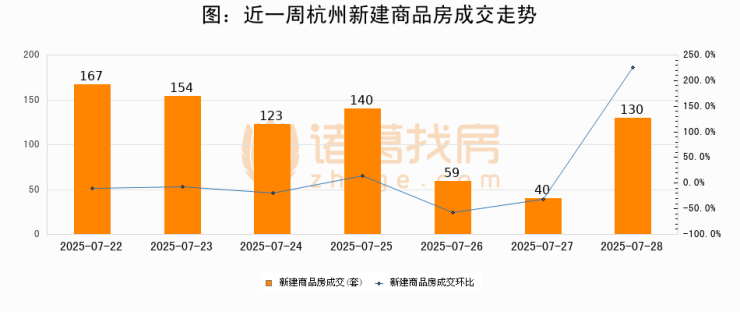 【杭州成交日报】07月28日新房成交130套、二手房258套;涨价房源22套