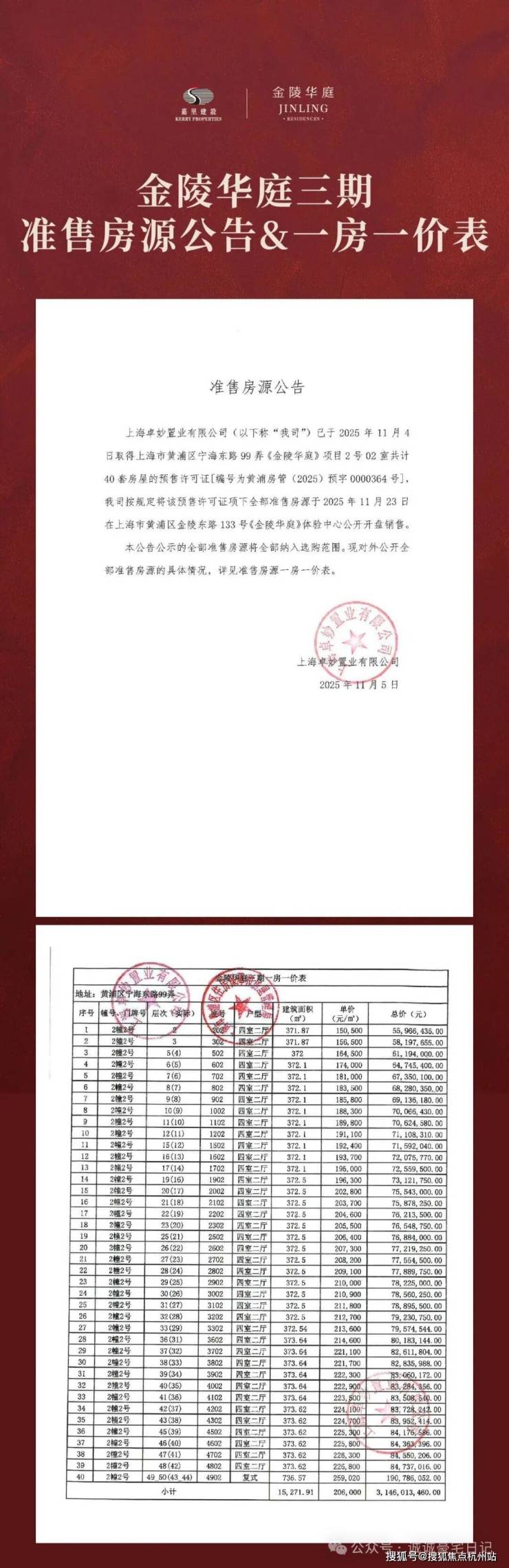 最新信息:黄浦区外滩街道核心豪宅项目【金陵华庭二期】最后批次加推,现仅最后2席位,370㎡户型,中区&高区各一套,样板间开放中,预约可看!