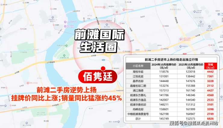 价格上,在约98%板块挂牌价同比下降的当下,前滩多数小区仍保持价格坚挺;销量上,今年1-10月二手房成交约230套,同比大涨约45.6%,印证板块吸引力。