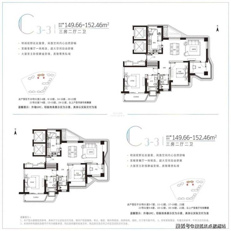 约122-180平方米的三房两厅两卫