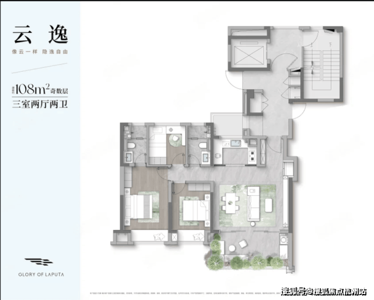 偶数层南向超大L型空中庭院