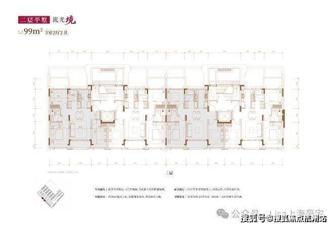 建面约99㎡3房2厅2卫(三层上叠):