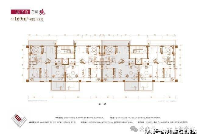 建面约169㎡4房2厅3卫(一层下叠):