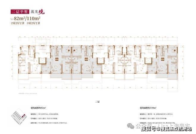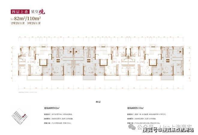 建面约82㎡2房2厅2卫/110㎡3房2厅2卫(四层上叠):