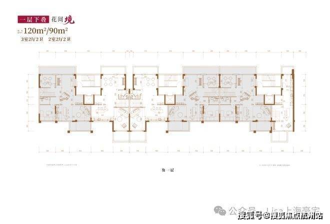 建面约120㎡3房2厅2卫/90㎡2房2厅2卫(一层下叠):