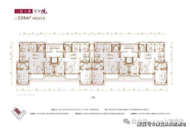 建面约134㎡4房2厅2卫(三层上叠):