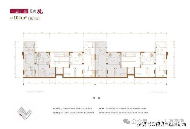 建面约104㎡3房2厅2卫(一层下叠):