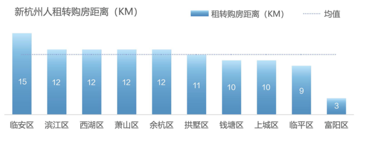 若是考虑买房,大部分人还是选择“租在哪就买在哪”,租转购平均距离仅11.1公里,跨区较少,相对来说富阳区最“封闭”,几乎都是“内部消化”,而滨江区流出人口最多,尤其是从租在滨江到买在萧山的比例较高。从租房到买房同样也是对居住状态的升级,居住面积更大、居室数量更多是大多数选择。