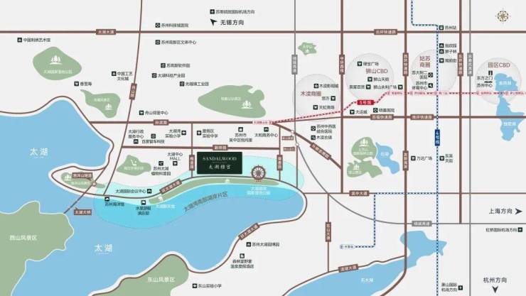 公共交通:项目距离地铁5号线(太湖香山站) 1.5km,通达苏州全市,转11号线连通上海大都市。