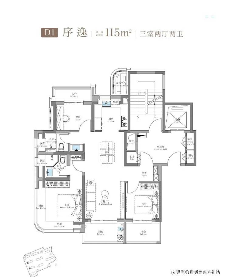 是的,三阳台的设计手法,仿佛一个膨胀剂,将建筑面积114平米的户型,产生了全方位的扩容。