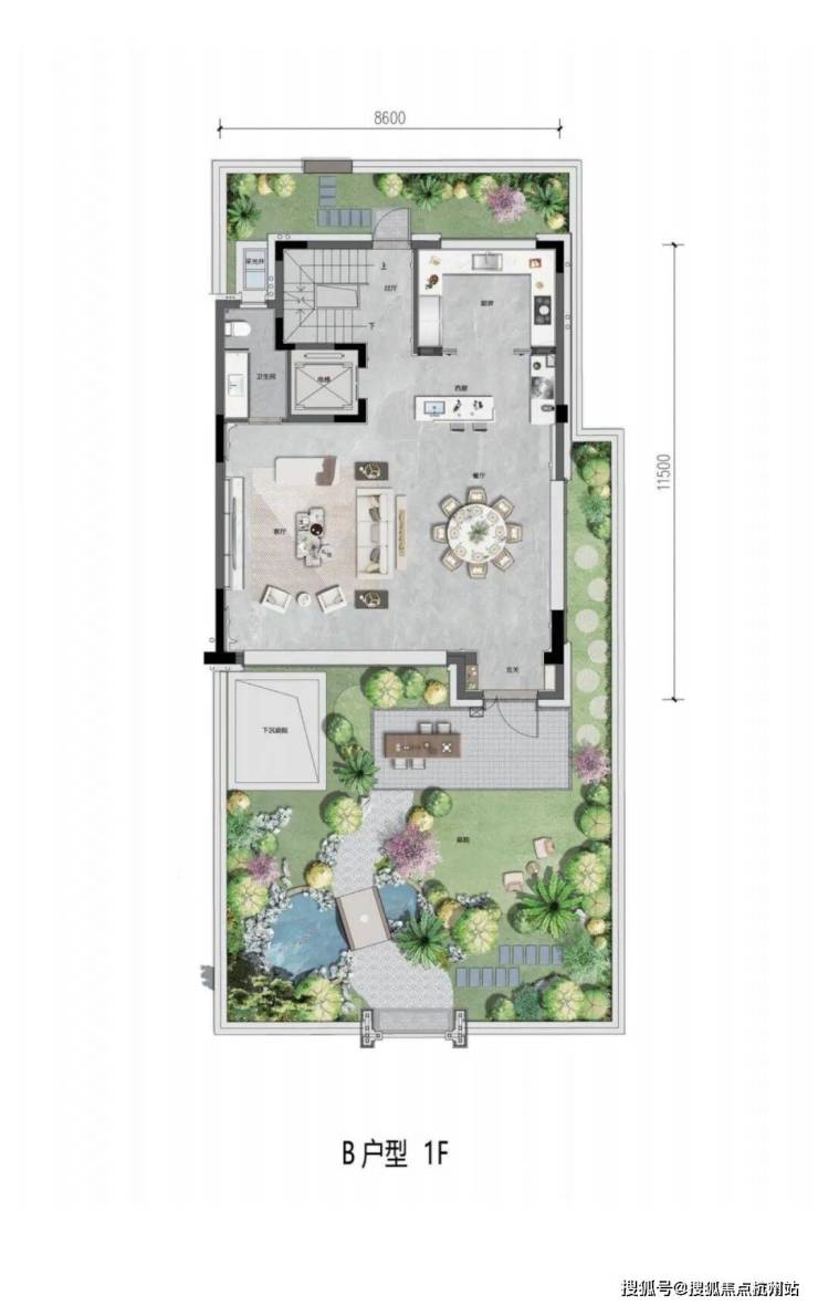 地下室也是这个项目的设计亮点,所有的建筑均配置了私家车库,南向设置了一个10㎡左右的下沉花园空间,大大提高了地下空间的通风、采光质量。