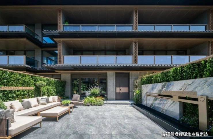 三重屋檐,代表天地人融合的东方宫殿最高等级,上檐、外檐、下檐三重结构,现代立面,以铝板、格栅、石材、瓦墙型材、玻璃等现代型材,彰显传世之宅的独特气度。