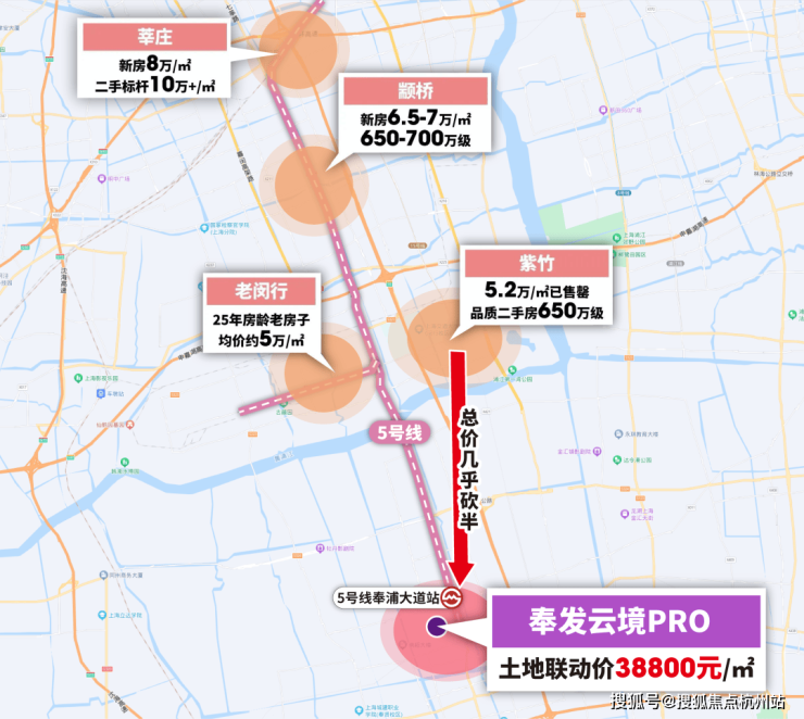 另外,从5号线通勤市区的角度看项目妥妥是价格洼地,同时它也是整个5号线奉贤段的价格洼地,要知道奉贤花海最新联动价已达约5.5万/㎡,项目置业性价比非常高。