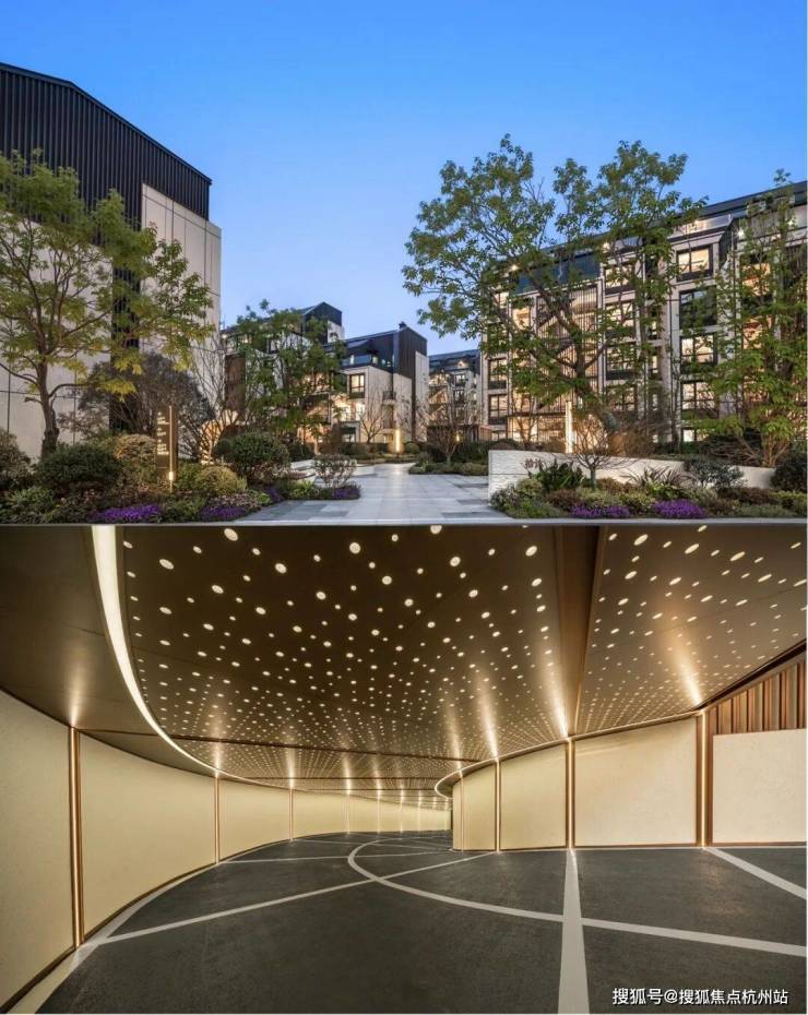 日常归家,穿过接近约35米超级门头展面,精致石材、金属幕墙、错落花境陈列于侧,媲美奢华酒店的场景定制感,赋予归家强烈仪式。