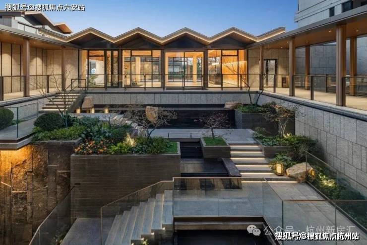 首先迎面的就是一个造型奢华的水系艺术喷泉景观,在加上挑高非常夸张的金属巨幕架空层,结合柔和的光影,给人的感觉就像5星级酒店,让您每一步归家,都仿若五星酒店下榻,尊崇感油然而生。