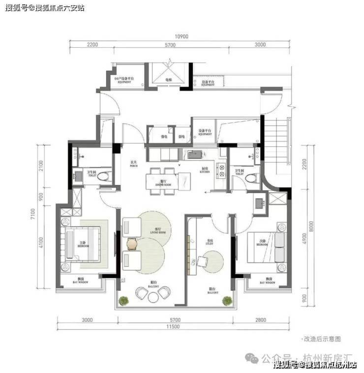 这款户型做到了四开间朝南,面宽约11.5米,“小面积大面宽”的空间格局可以媲美120