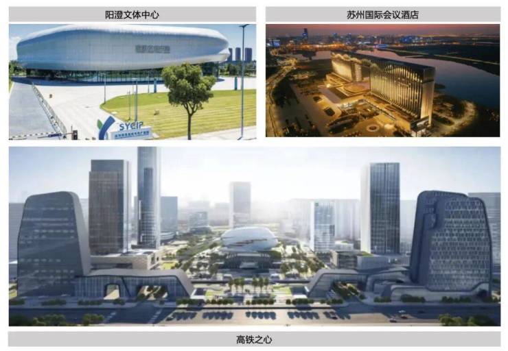 【人文艺术 优雅涵养】高铁之心、苏州国际会议酒店、阳澄文体中心、苏州大剧院(规划)、苏州国际文化体育艺术中心(规划)、苏州美术馆及图书馆(规划)、当代艺术馆(规划)。