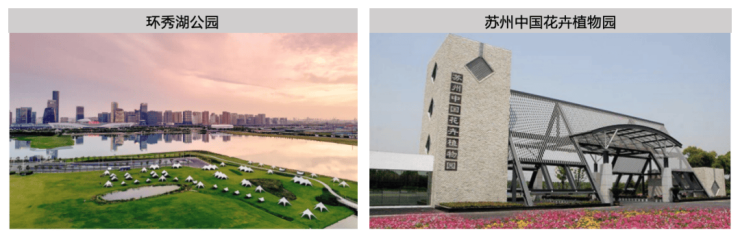 【城市绿肺 鲜氧环绕】项目东侧市政规划公园、南侧北河泾生态体育公园(在建)、苏州环秀湖公园、苏州中国花卉植物园。