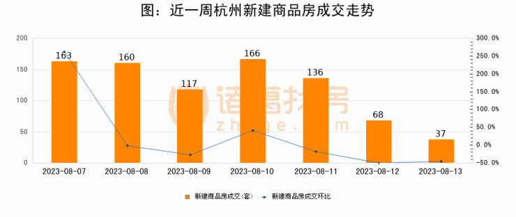 【杭州成交日报】08月13日新房成交37套、二手房106套;涨价房源48套