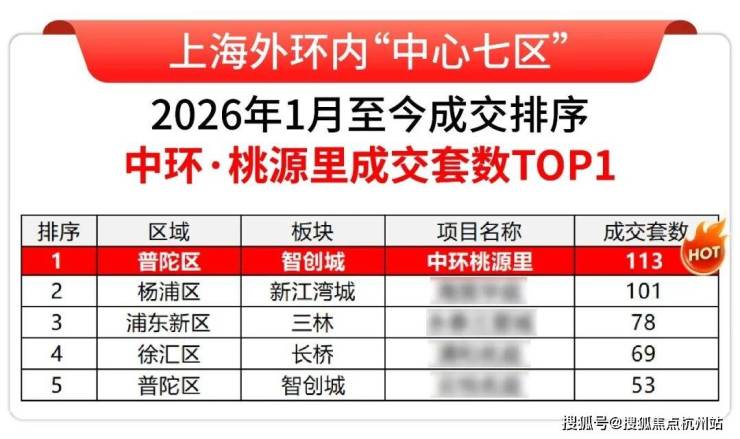 而新房市场的表现,恰恰印证了这一趋势——普陀桃浦智创城板块的【中环·桃源里】,1月至今狂销113套(网签数据存在滞后性,实际成交套数更多),不仅一举拿下板块成交金额、套数、面积“三冠王”,更登顶外环内“中心七区”成交套数TOP1,成为改善市场的绝对黑马。