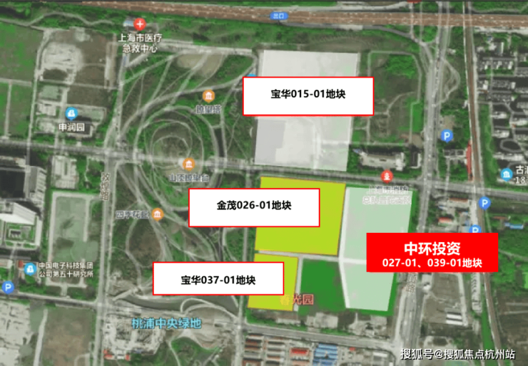 2022年9月,上海第三批次土拍中,中环投资以总价约305000万元,竞得普陀区桃浦科技智慧城(W06-1401单元)027-01、039-01地块,地块出让面积31385.2㎡,容积率2.5,溢价率0%,成交楼板价38872元/㎡,房地联动价83000/㎡。