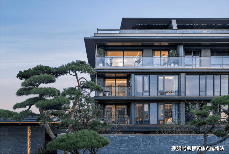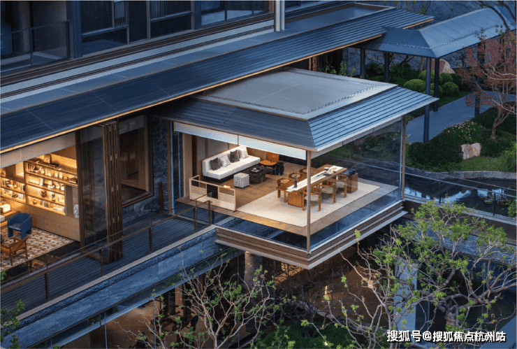 在建筑上,绿城·逸庐沿用庐系“现代形,东方意”的内核。小高层以金色线条勾勒挺拔轮廓,大面玻璃搭配轻盈檐角,既有东方风骨,又具摩登质感;叠墅区则强调“东方屋檐下的院落感”,通透立面搭配简约线条,让阳光与清风自由穿梭,勾勒出“飘逸东方之美”。